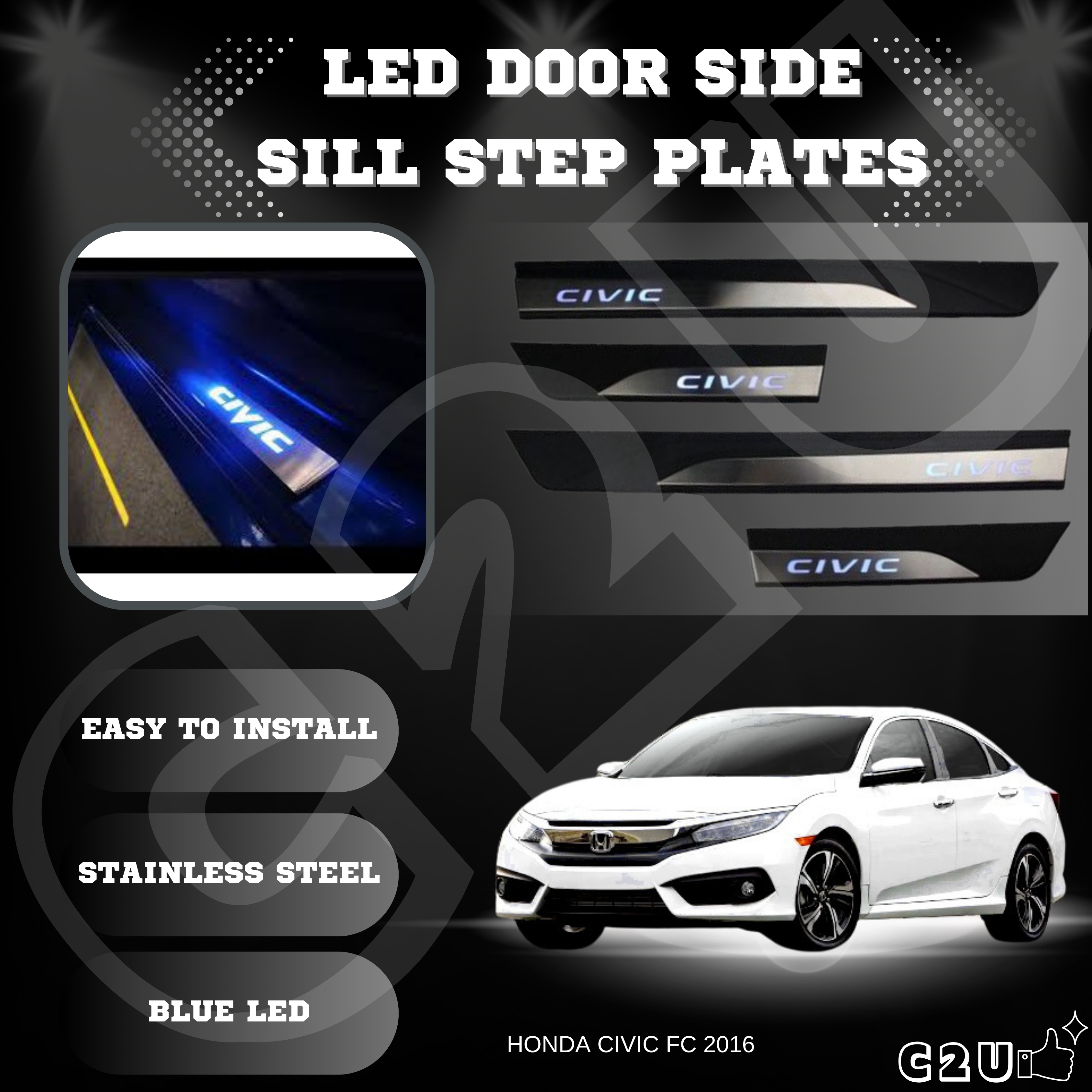 Honda Civic FC 2016-2021 Door Side Sill Plate With LED